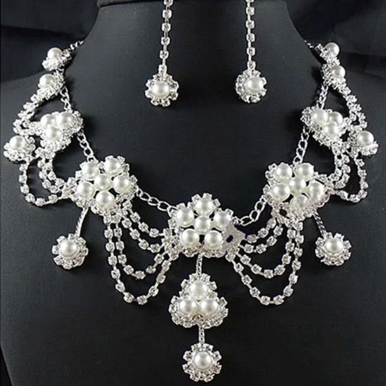 Conjunto de joyería nupcial de lujo con diamantes de imitación y perlas de imitación